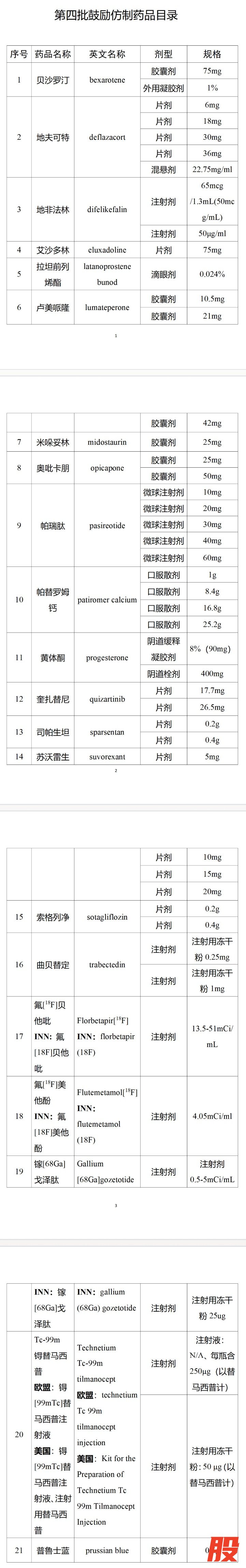 1月4日,国家卫生健康委联合工业和信息化部、国家知识产权局、国家医保局、国家药监局等部门组织专家对国内专利即将到期及临床供应短缺(竞争不充分)的药品进行遴选论证,制定了《第四批鼓励仿制药品目录》。第四批目录收录21个品种、47个品规。